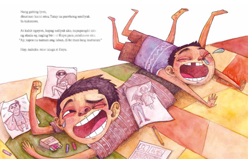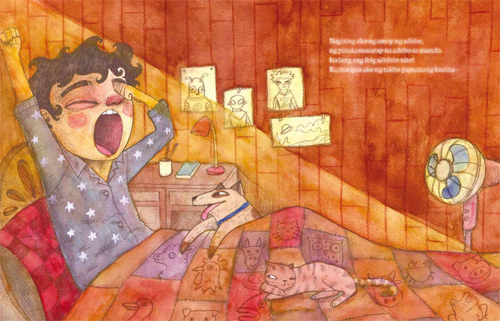 The thing I love most about the picture book format is its potential for transformation. A manuscript exists then gets transformed into something new and given depth through the interpretation and/or interaction of another. I’m not sure whether it would be self-serving if I heaped praise upon illustrator JC Galag. I am, after all, complimenting another person. But the praise is directed at illustrations in a book that also happens to bear my name, so I might end up sounding really hardsell. Maybe you can just let me say that when I saw the finished art for our book, the crazy happy-happy-joy-joy I felt was because of JC’s cute, funny, and can-I-say sobrang gandang illustrations. (Oh there. I’m sorry. I can’t help it. The book is really cute!)